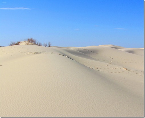We hiked up the sand dunes behind our campsite. I could just picture kids having a ball in this giant sand box! One can even rent ‘discs’ to sled down the dunes! But there were no kids…..and few other people in the campground.
