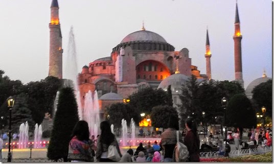 We enjoyed our evenings strolls, generally staying out until just dark……enjoying the lights on the fountain and around the Blue Mosque, before heading back to our hotel.